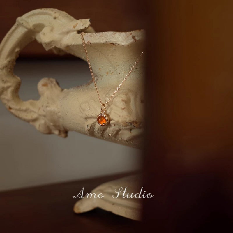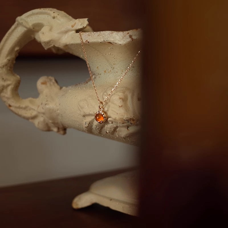 Time Fragment Amber Necklace for Women Spring Summer New Style Choker Niche Light Luxury Retro Simple High-end Collarbone Chain