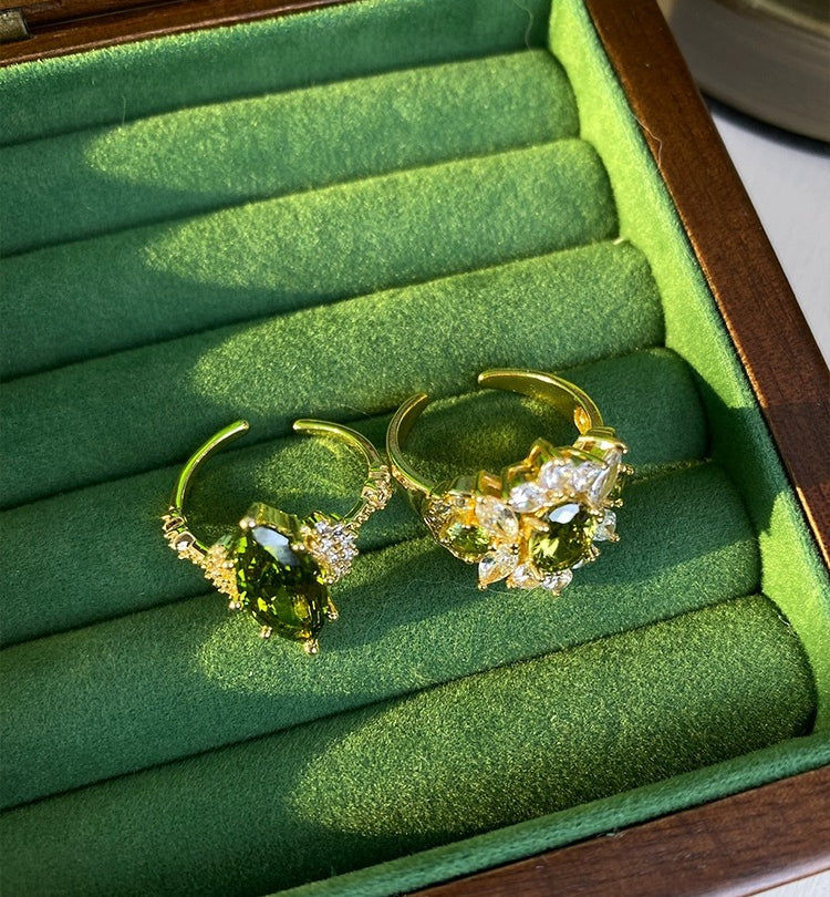 Vintage Jewelry French Retro Exquisite Niche Light Luxury Palace Style High-end Olive Green New Open Ring for Women